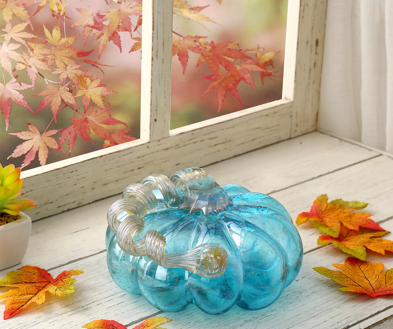 4" Blue Glass Pumpkin -Home Decor Store 810491565 A0 2