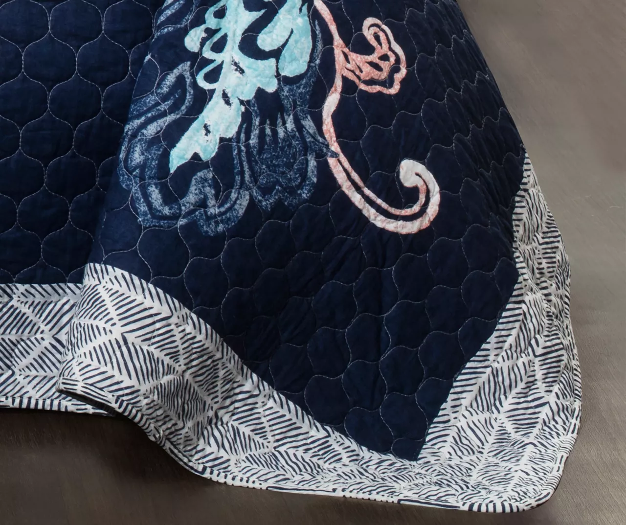 Aster Navy & Pink Floral King 3-Piece Quilt Set - Image 4