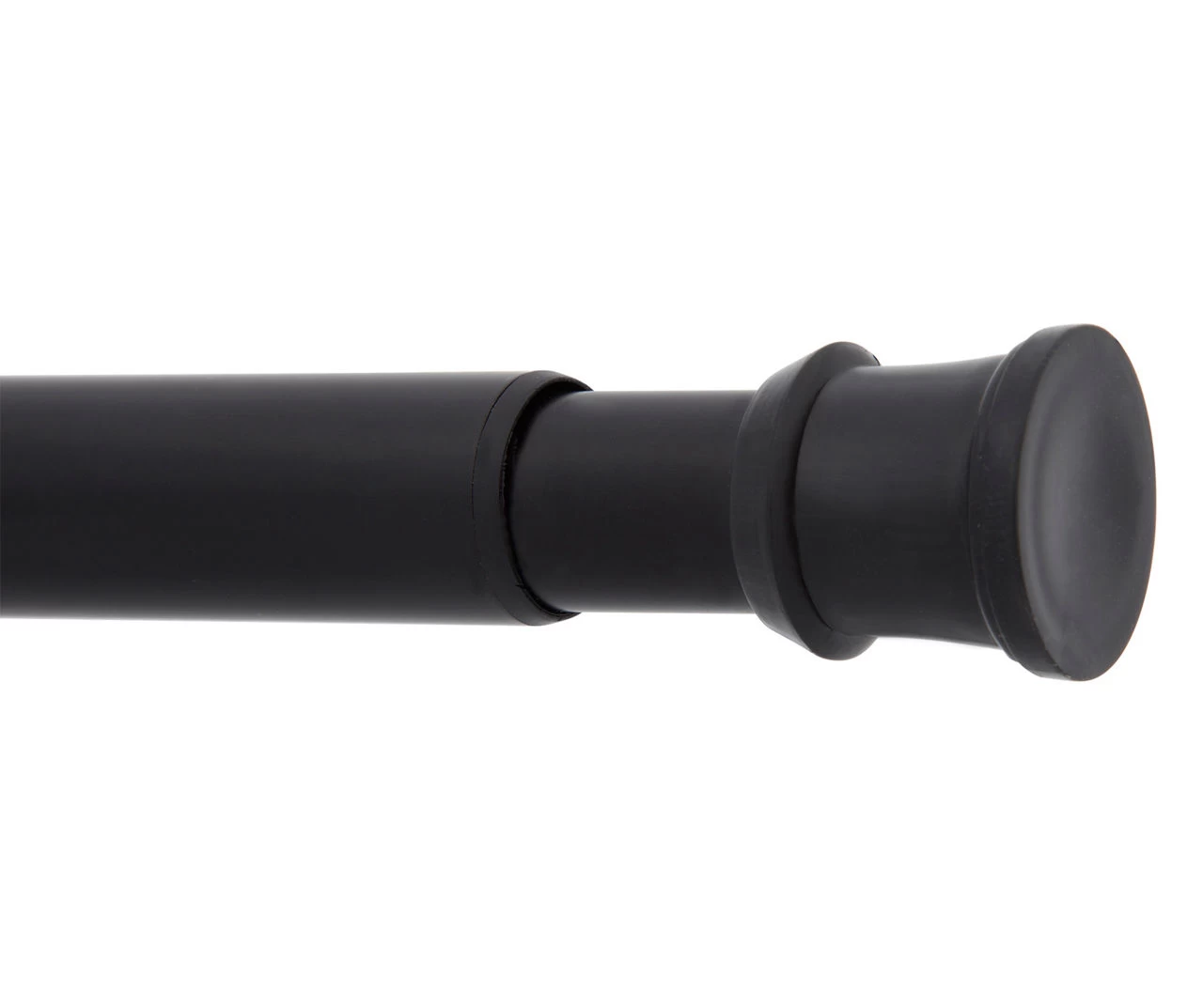 Make a bold statement in your bathroom with this black tension shower rod by Kenney. This rod features sturdy steel construction and non-slip, non-scratch PVC finials. Easy to install, with no tools required. Simply slide the adjustable rod to fit inside your shower space and twist the rod to lock in place. This rod has a smooth, rust-resistant chrome plated finish that coordinates with your bath hardware.