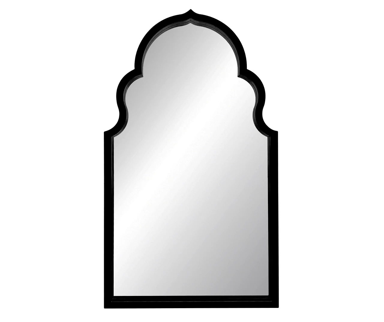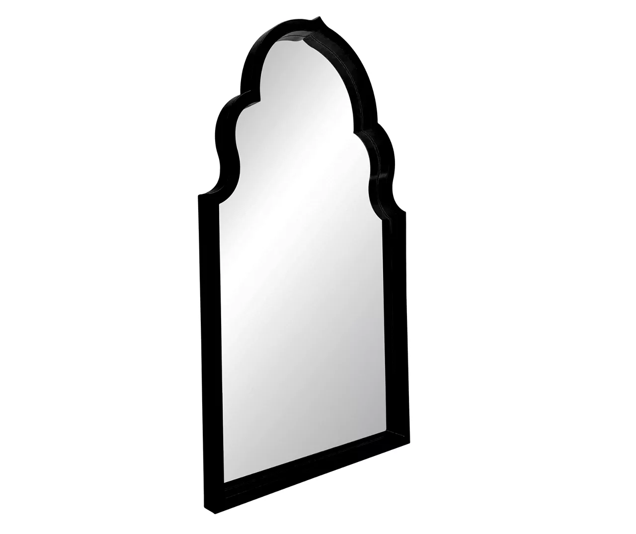This Moroccan-inspired mirror brings form and function to your home. A black frame features an arched top with clipped details. This mirror is a stylish addition to a living space, hallway or entryway.