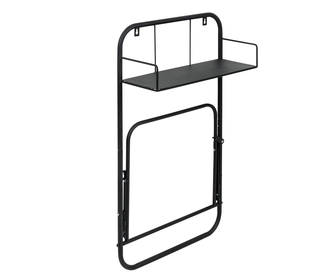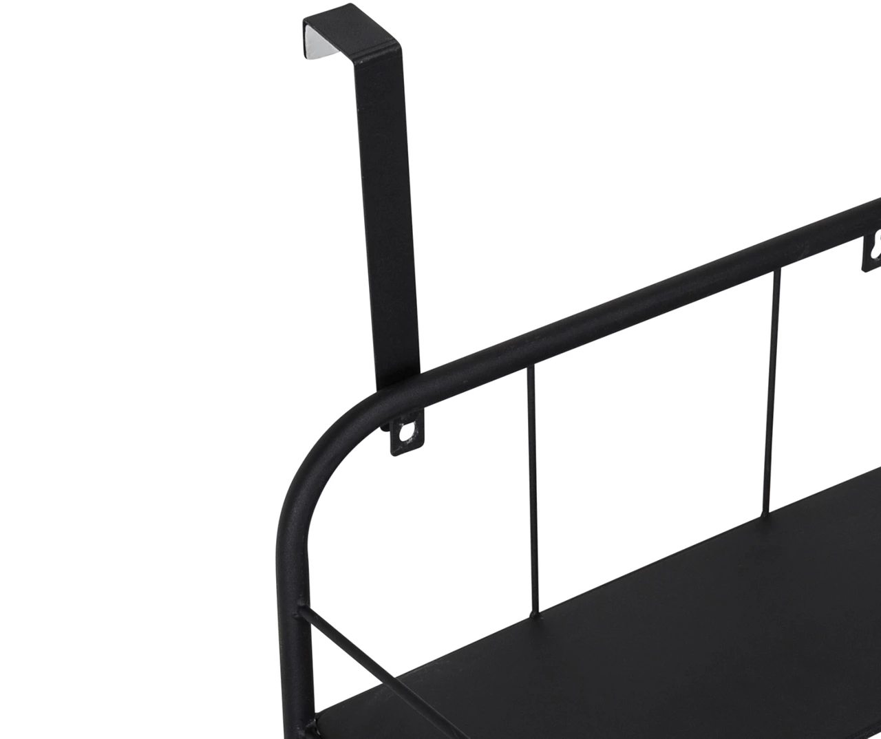 - Black metal top shelf for storage or display
