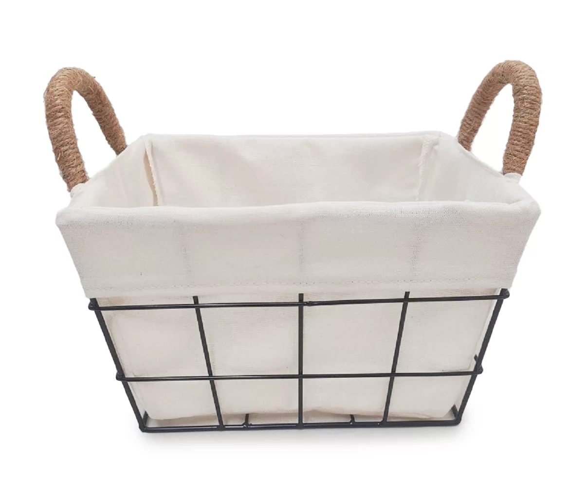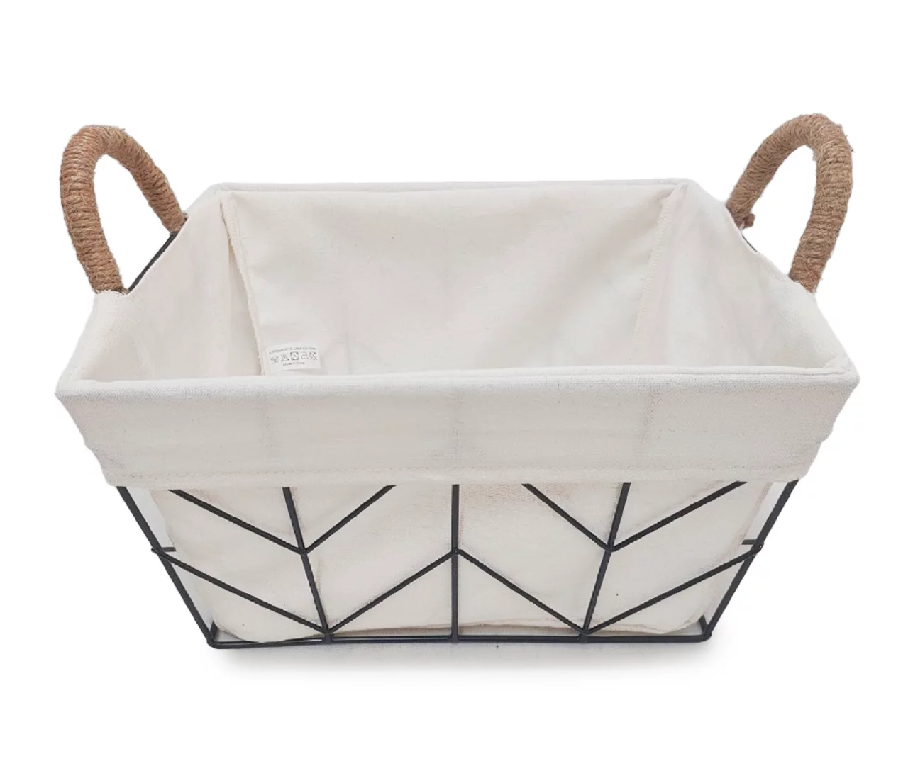 Tidy up your favorite space in chic style using this timeless storage bin. The black chevron wire basket with a white liner provides organization for your items and accessories while complementing a variety of home styles. Featuring jute wrapped side handles for carrying, this bin is perfect for electronics, toys and everyday storage solutions.