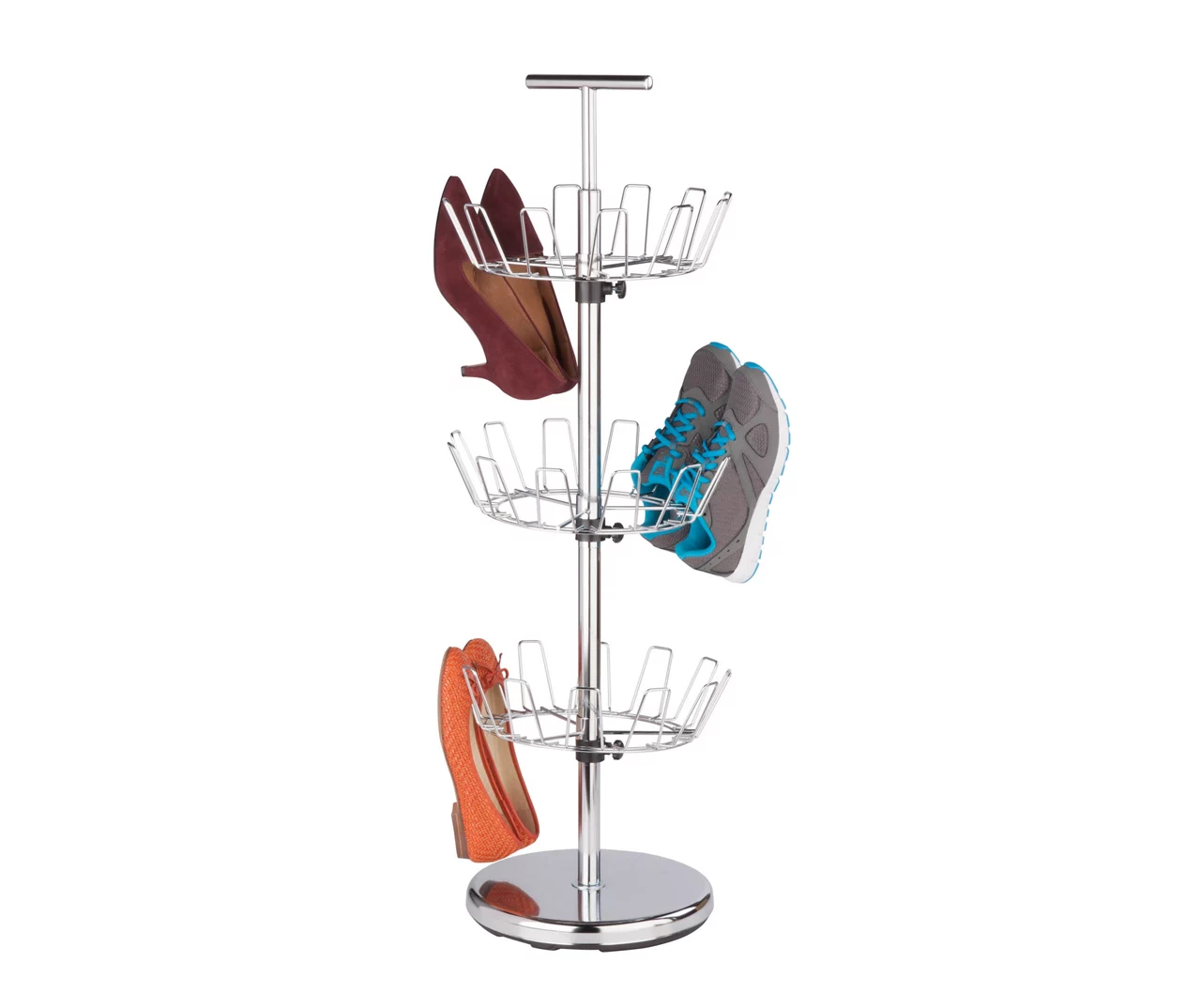 Designed with individually revolving tiers, this round shoe tree from Honey-Can-Do helps you bring order to your shoe collection while also making it easy to find and reach what you need. It’s a great space-saving solution that blends seamlessly with your home thanks to its polished chrome finish.