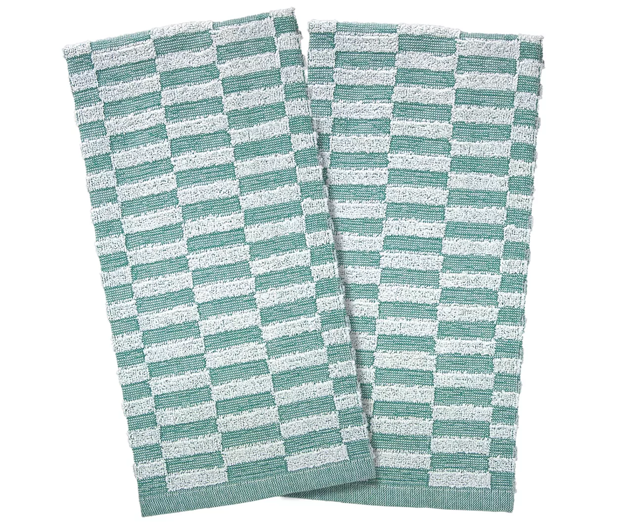 With a rectangular checkerboard pattern in lovely teal and white hues, this towel set from Cuisinart complements any kitchen space with contemporary flair. The towels are crafted from soft and absorbent cotton to quickly dry off hands and dishes alike with ease.
