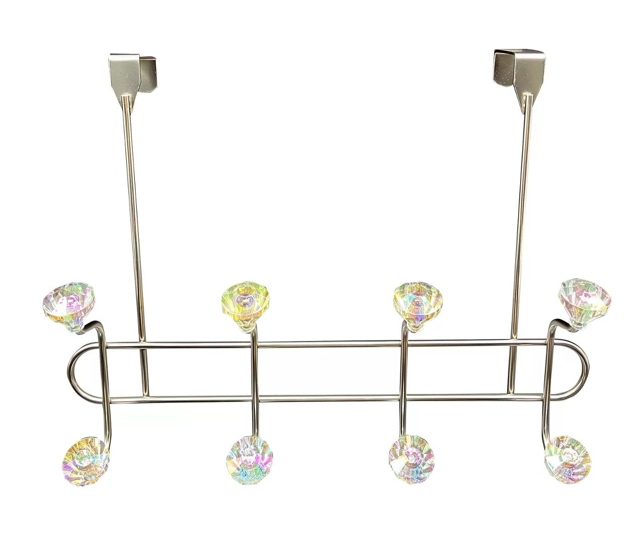 Instantly add more utility to a closet, bathroom or other area with this handy hook arrangement from Real Living’s Euphoric Expression collection. The single-row design features iridescent gemstone knobs on each hook, and it’s designed to fit over most standard doors for a quick and easy way to expand your storage space.