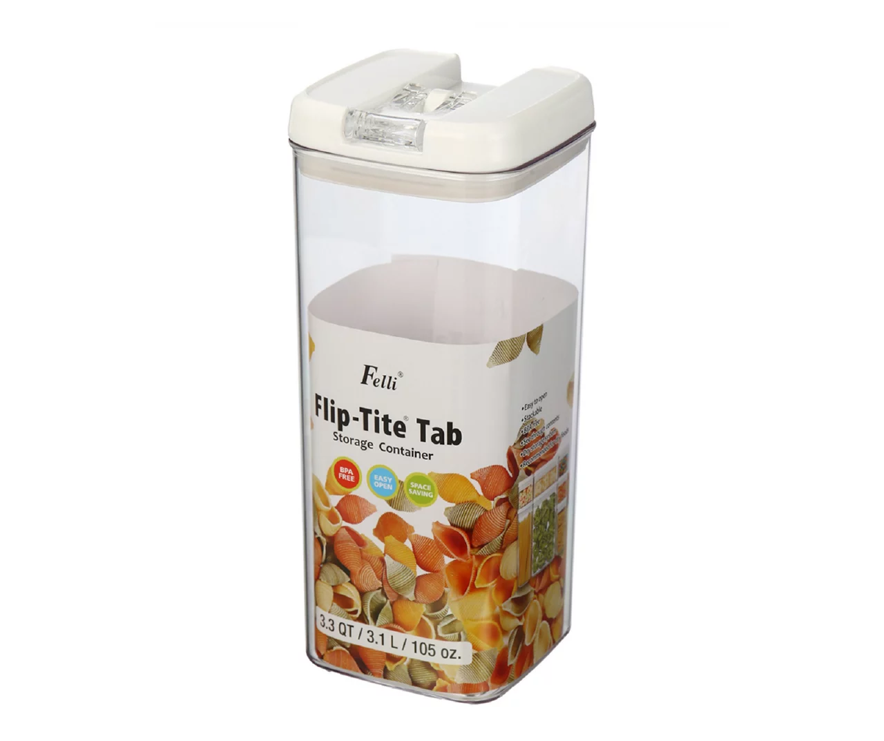 Keep ingredients fresh and organized with this sleek plastic storage container designed to save space in the pantry. Featuring a flip-tite tab lid, you can enjoy secure sealing that’s ready for travel or long-term storage. The rounded corners make for easy pouring, while the crystal clear plastic makes for easy viewing to quickly locate the contents.