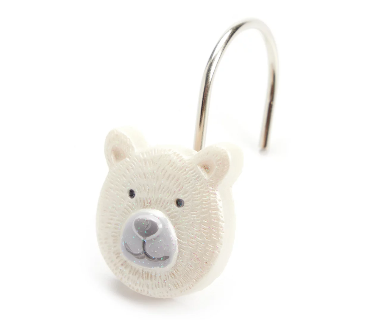 Transform your bathroom into a festive holiday retreat with the polar bear theme of this shower curtain set from the Frosted Forest collection. Immerse yourself in the joy of the season every time you step into your shower, surrounded by enchanting winter motifs with matching resin hooks.