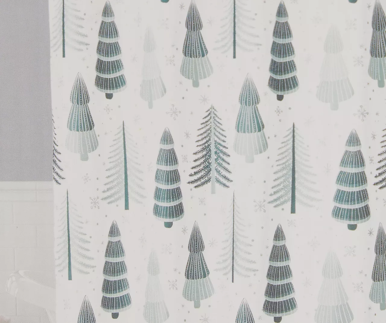 Transform your bathroom into a festive holiday retreat with the forest theme of this shower curtain set from the Frosted Forest collection. Immerse yourself in the joy of the season every time you step into your shower, surrounded by enchanting winter motifs with matching resin hooks.