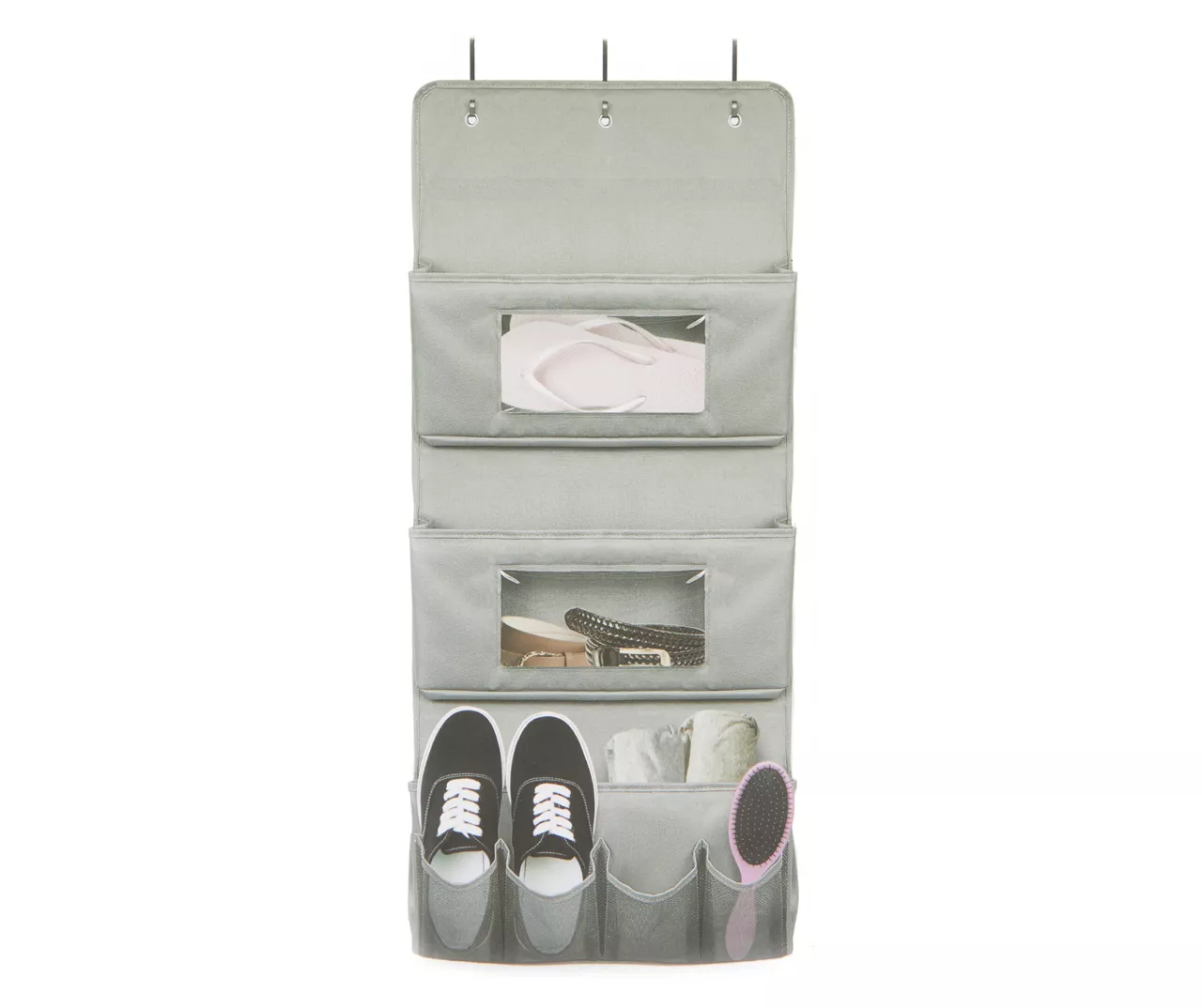 Organize and store your shoes, accessories and other small essentials with this handy hanging organizer featuring 7 pockets. It’s topped off by 3 hooks that fit most standard hanging rods so you can enhance your closets with added storage space.