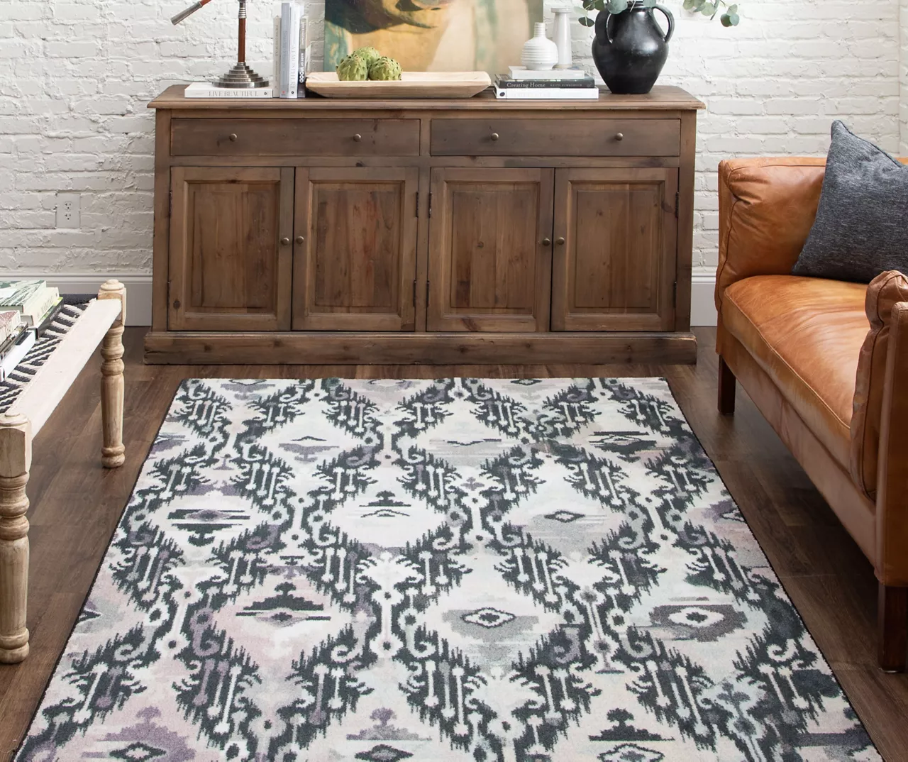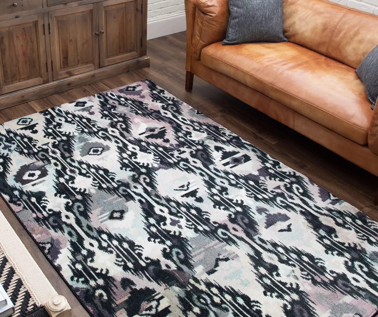 Create a spread of ikat artistry on your floors with the contemporary and vibrant design of Mohawk’s Hip Ikat area rug, featuring modern hues of urban black, silver gray and stark white. Thoughtfully crafted in the U.S.A. utilizing Mohawk Home’s exclusive precision dye-injected printer, this rug is designed on a plush EverStrand™ tufted base made from premium recycled polyester. A non-skid latex backing helps to keep things in place, and the low pile is durably designed to easily work with doorways or furniture while withstanding everyday use.