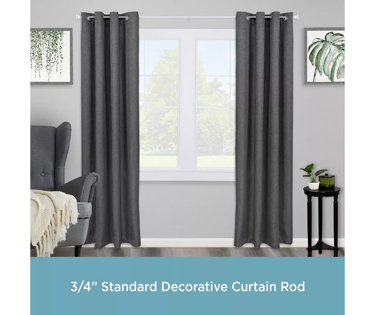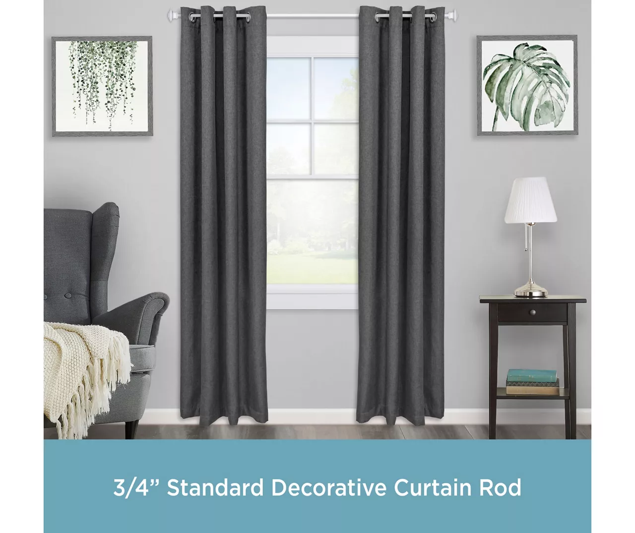 • 3/4″ diameter curtain rod adjusts from 36-66″ and projects 3.73″ from the wall