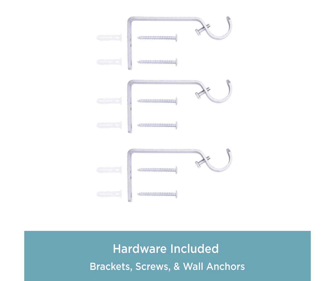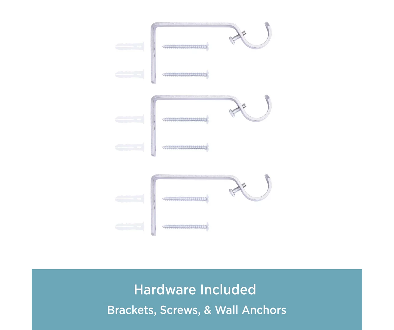 • Includes 1 telescoping curtain rod with finials, 2 brackets, 1 center support, screws, drywall anchors and installation instructions