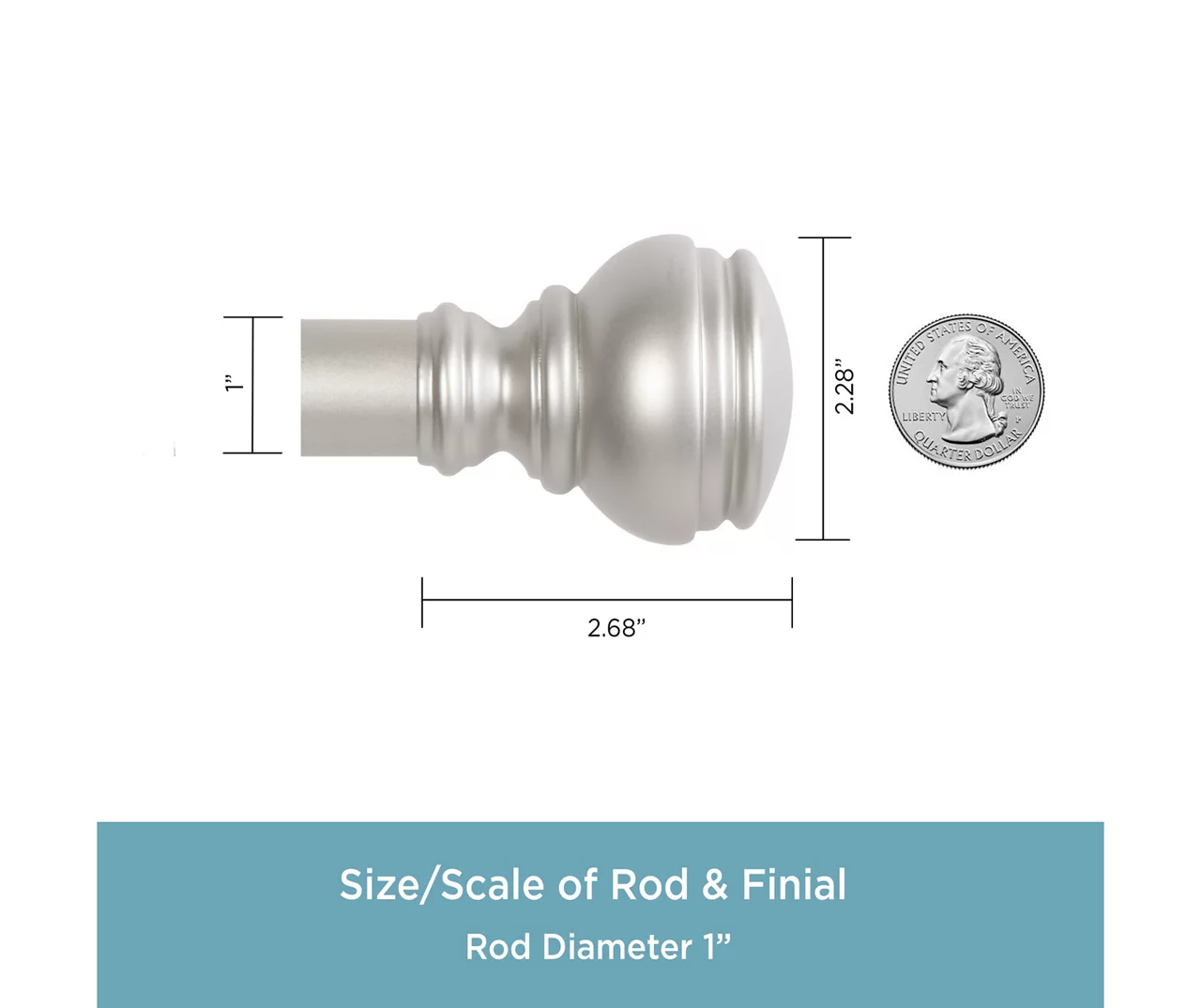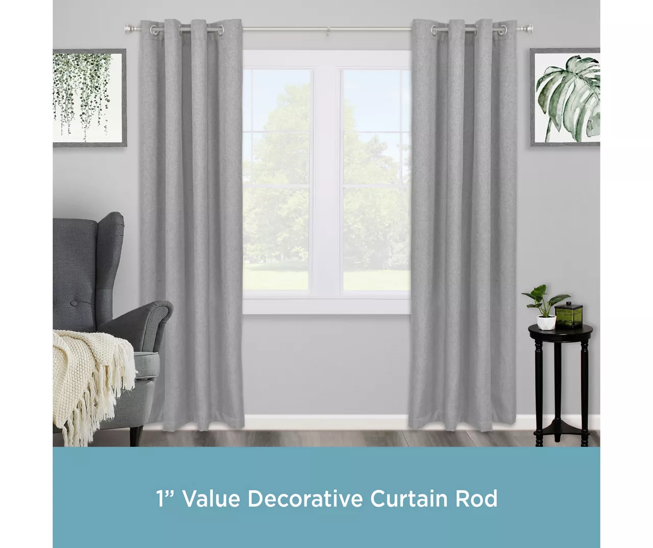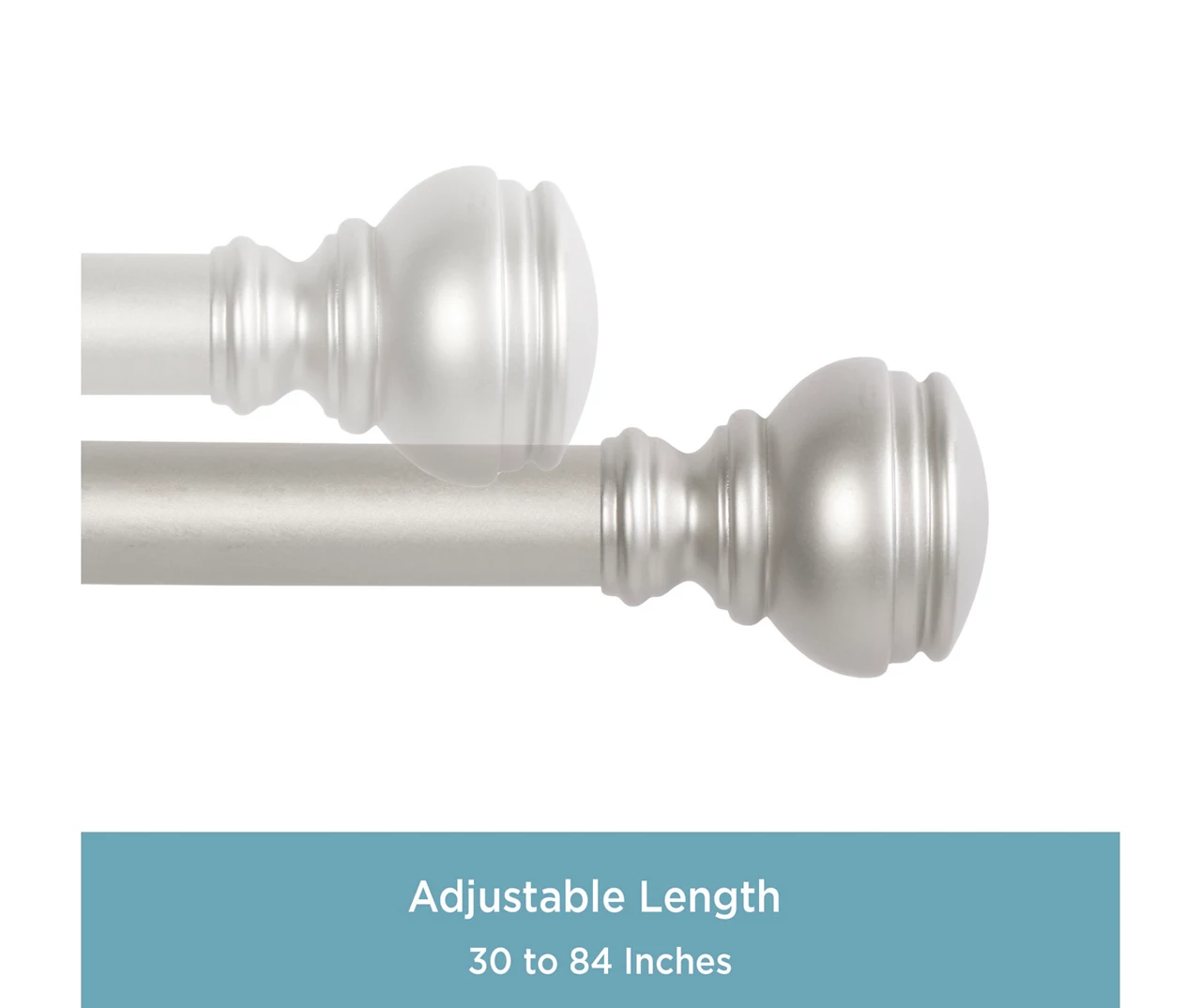 - 1″ diameter curtain rod adjusts from 30-84″ and projects 3.38″ from the wall