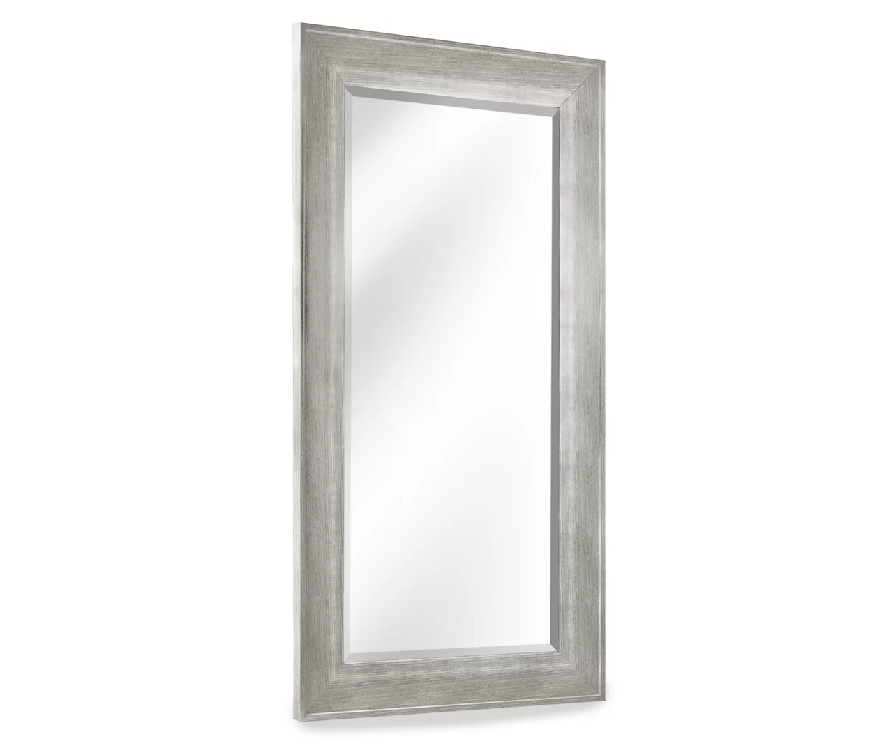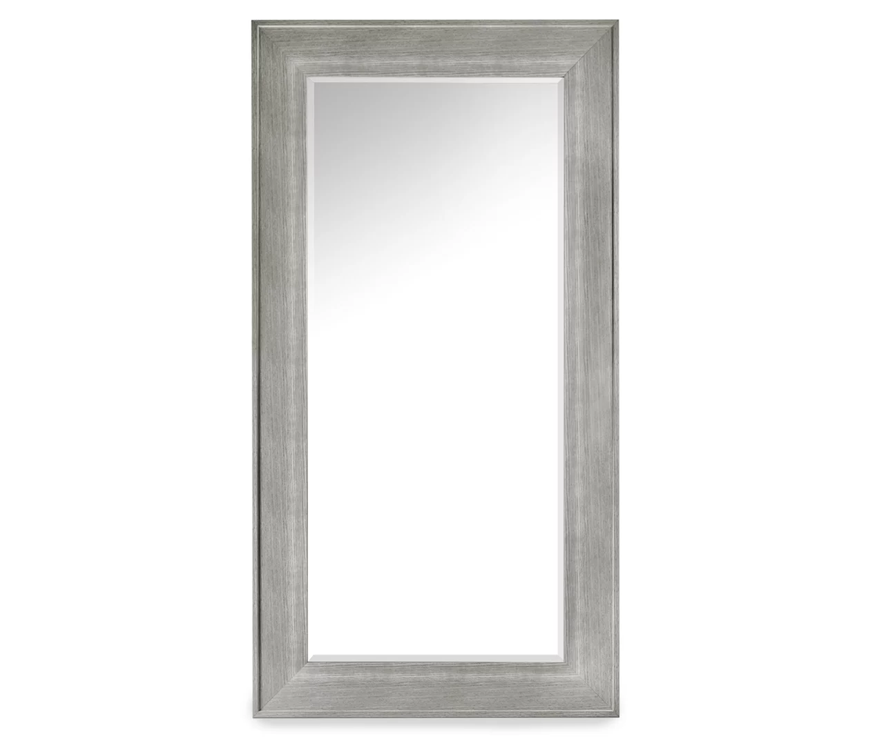 This wall mirror is enclosed in a rectangular frame featuring a white wood grain look with warm gray undertones. The mirror edges are beveled, giving an additional touch of sophistication to the rustic aesthetic. This functional and decorative mirror can serve as the visual focus at the end of a hall, or the centerpiece of a living room gallery wall. Hang this gorgeous mirror above or behind a dresser, vanity or other furniture to enhance with rustic yet airy design.