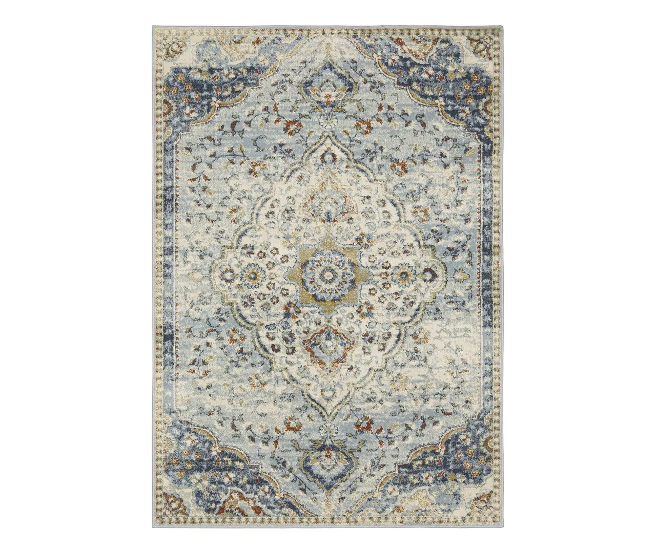 The Ludlow collection is power-loomed in the USA from tri-colored and textured polypropylene yarn. It features a traditional floral medallion design in beautifully updated, yet classic colors of deep blue, cool soft blue, tan and rich rust red with warm ivory. The multi-colored yarns add depth and visual interest to the designs and the textured effect creates a very soft feel underfoot.