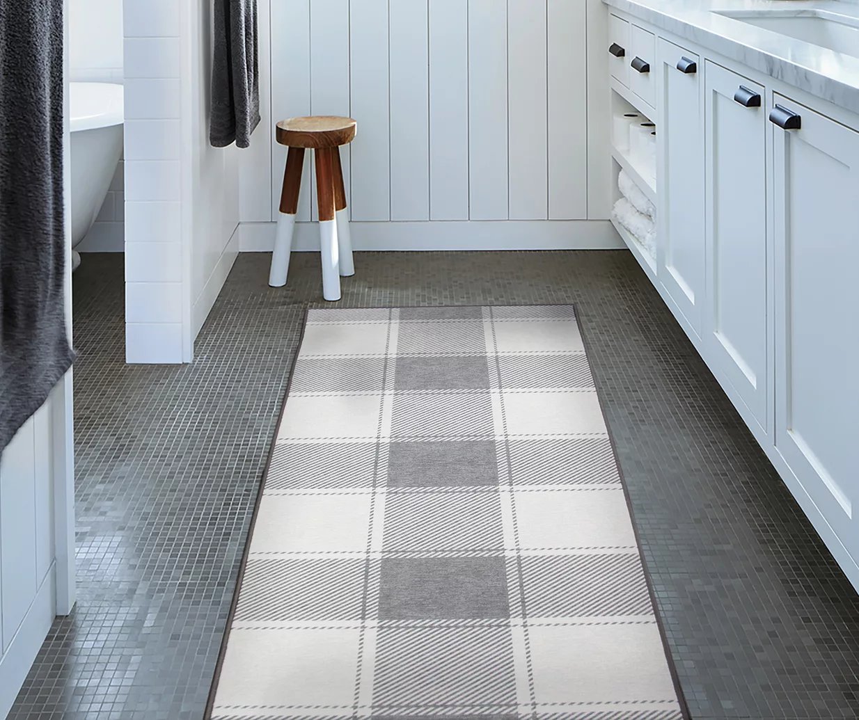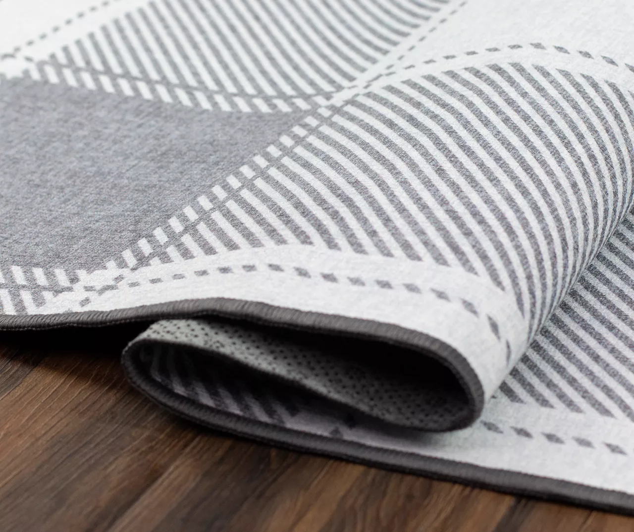 Add a little extra oomph to your space with this buffalo plaid rug in gray. Designed with a classic buffalo check motif, this soft gray patterned rug offers a modern take on this farmhouse and holiday motif. Aside from the trendy design, this rug features state-of-the-art construction, making it slip, stain and water-resistant. Protect your floors from spills and scratches and wash away germs with a full line of no-fuss rugs. My Magic Carpet is an eco-friendly alternative to traditional rugs. This rug is made of non-allergenic, stain-resistant microfiber polyester, with a waterproof inner liner and a non-slip backing.