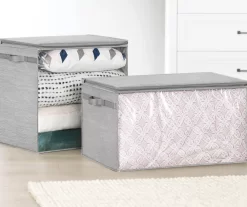 White And Black Plaid Fabric Storage Bin With Handles, (15″)