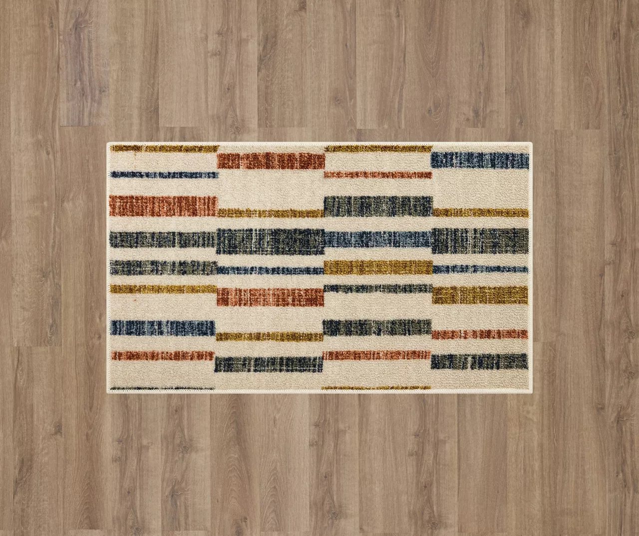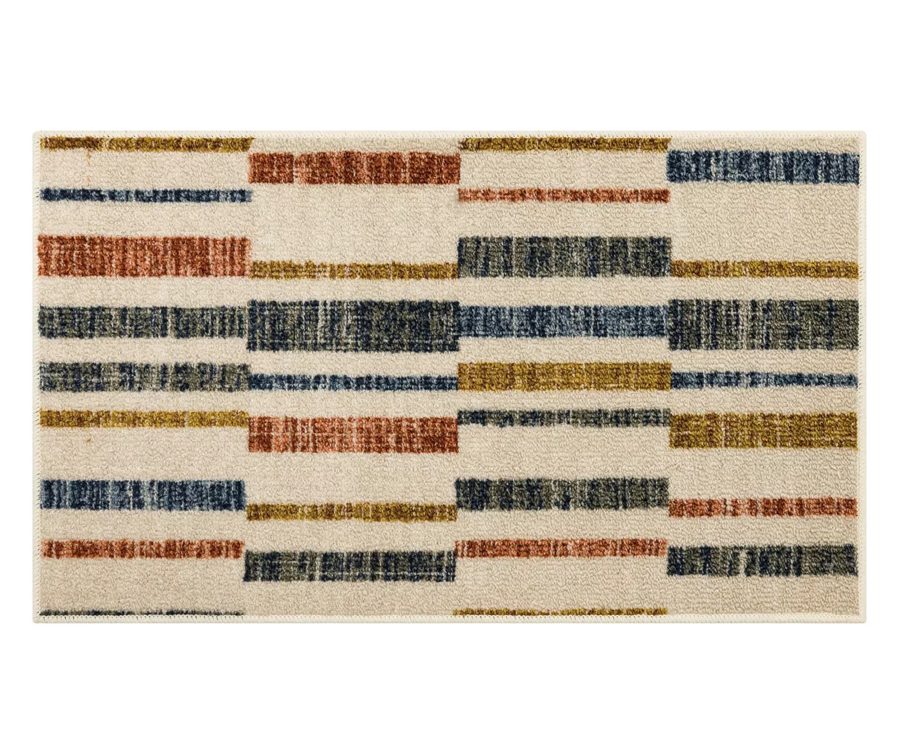 The Mohawk Home Tilton area rug features a modern color block design motif in a bold palette that is sure to complement any room. The low pile is created with Mohawk’s premium wear-dated nylon fiber for a soft touch and dependable durability. This rug is sure to make an elegant addition to a bedroom or other living space and the non-skid latex backing helps to keep things in place.