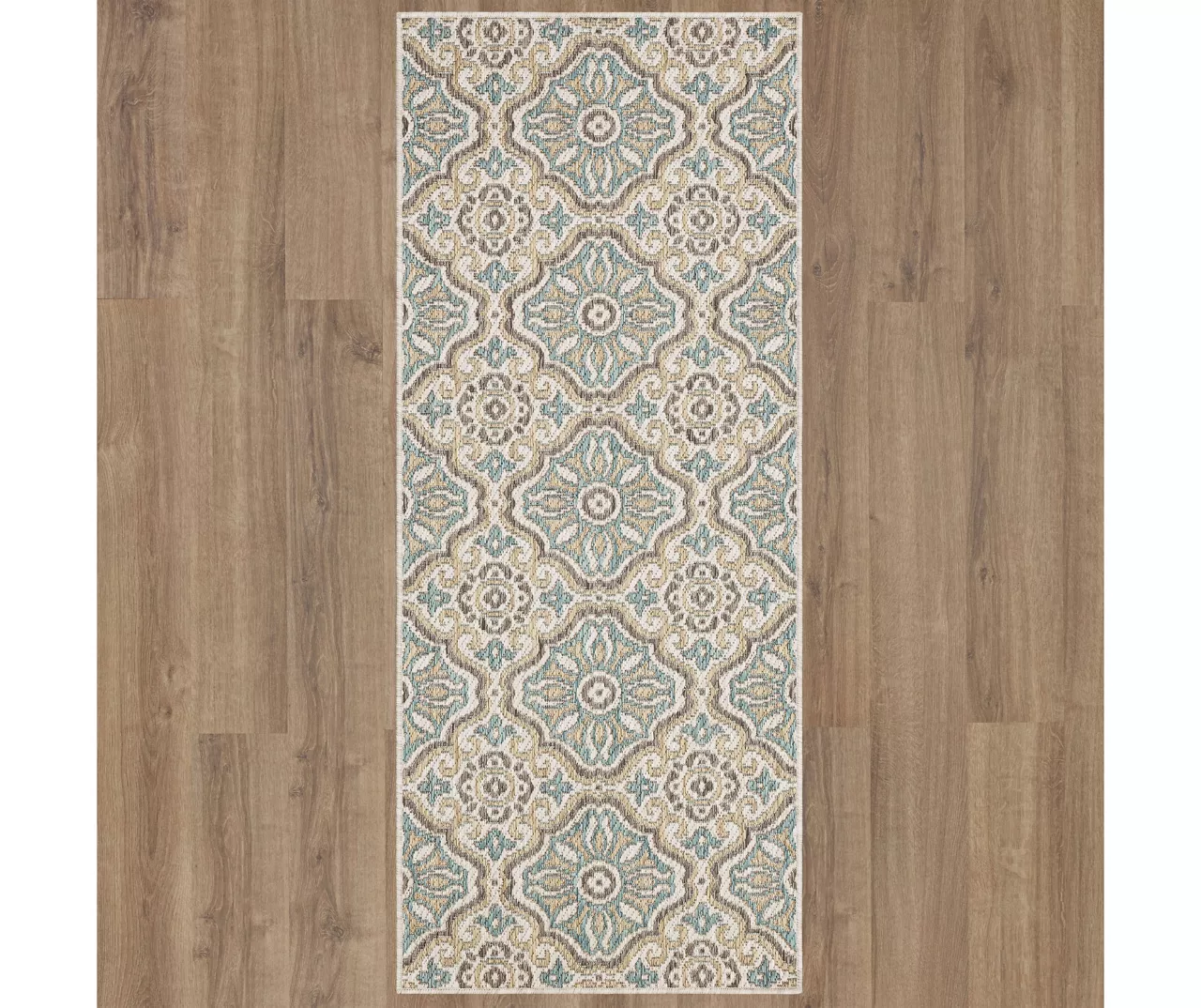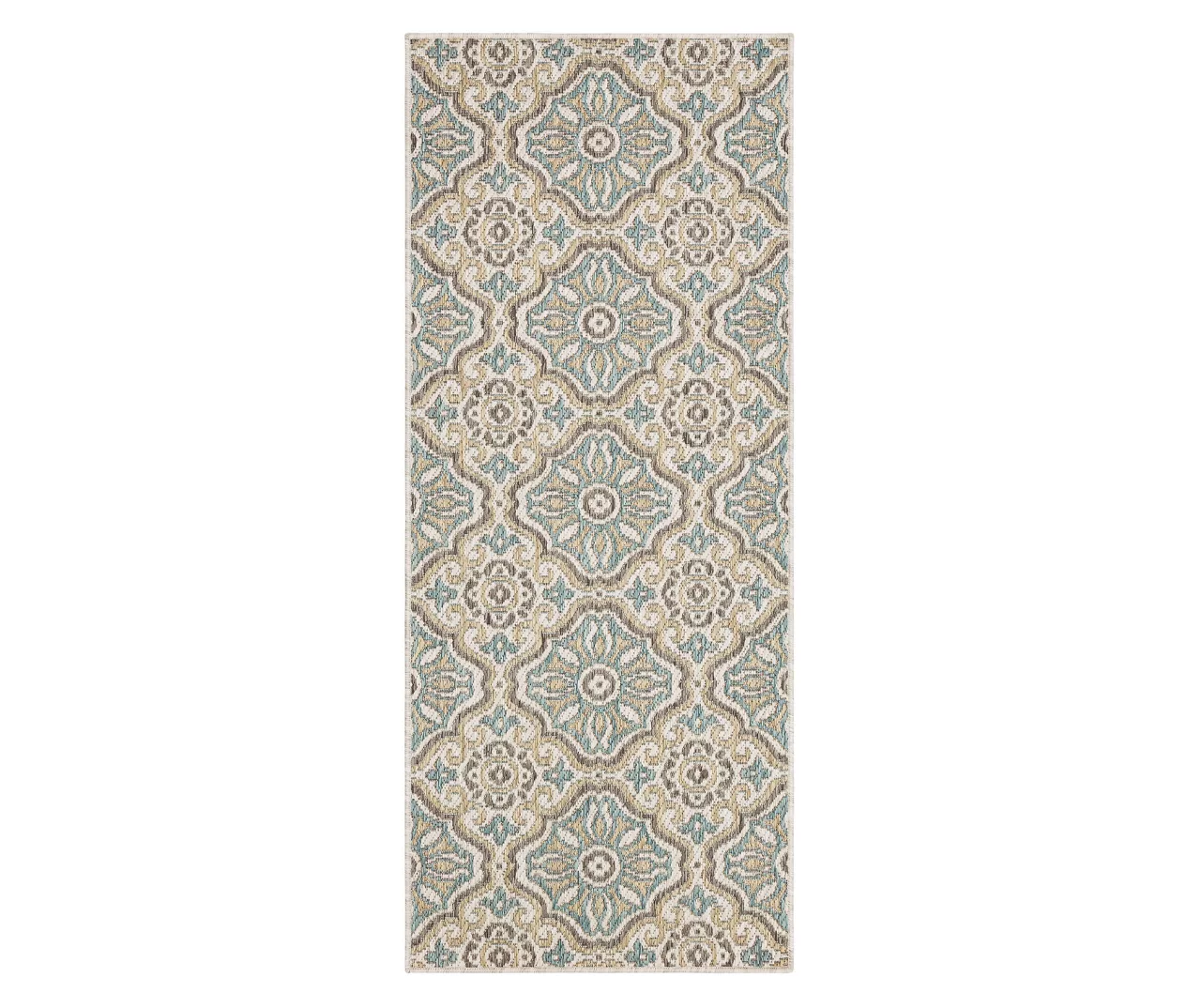 The Mohawk Home Waterside area rug features globally inspired bohemian design in versatile color palette combinations of gray, beige, turquoise and brown. Made with all-weather olefin polypropylene yarn, this flatwoven area rug offers a detailed design, soft feel and dependable durability that works in both indoor and outdoor spaces. The resilient surface fibers are resistant to stains, fading and moisture, making it a great choice for high-traffic areas.