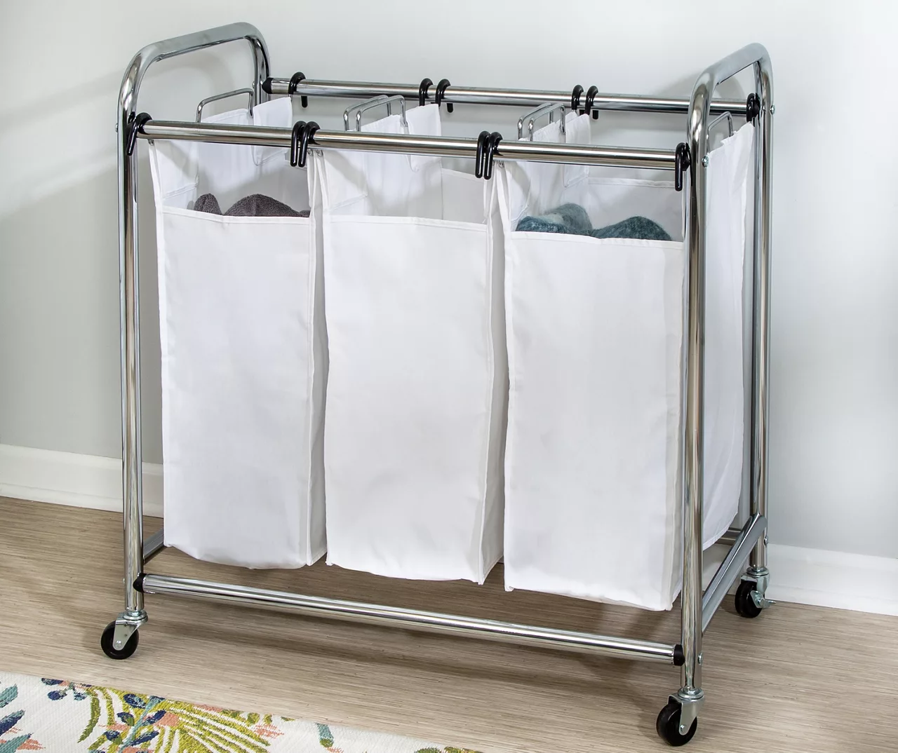 Store and organize your laundry loads with ease with this handy sorter from Honey-Can-Do. Three bags with metal handles sit in a sturdy steel frame, and rolling caster wheels make it easy to move this sorter around as needed.