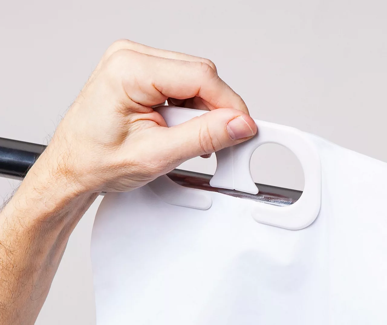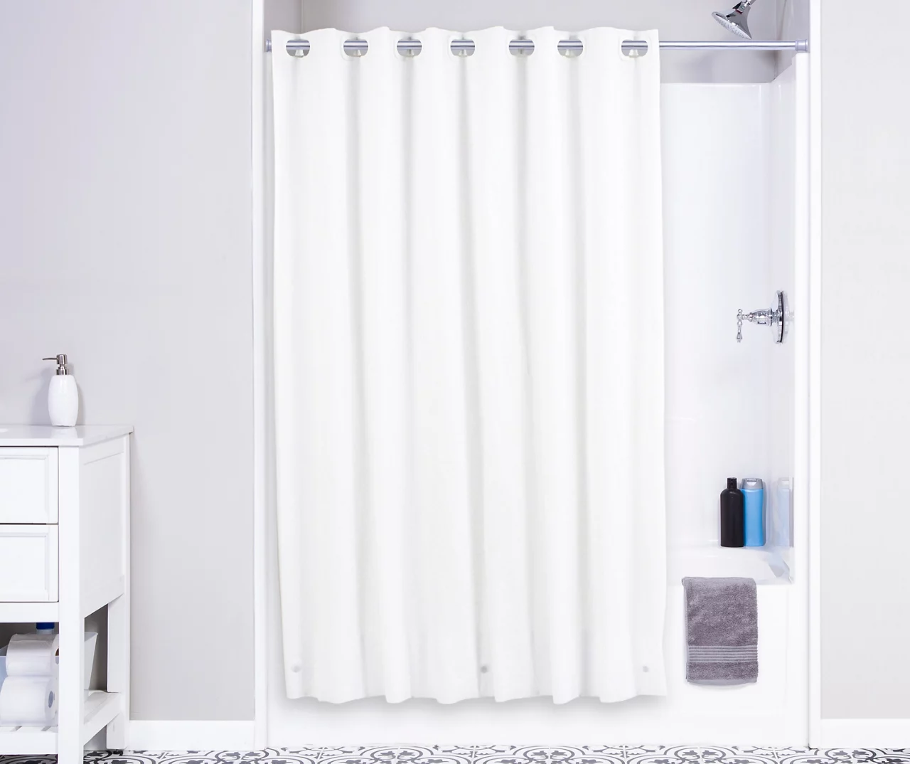This shower curtain liner installs in seconds without a hook or ring. With the built-in hinged flexible rings, you don’t even need to remove the shower rod, the flex rings can just pop over the shower rod, easy-on and easy-off. Shower Curtain Liner is made of environmentally friendly PEVA, making it PVC-free and odorless.