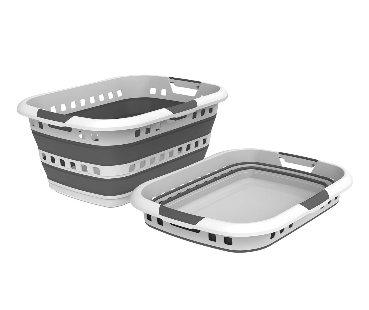 Tackle each load of laundry with this handy laundry basket from EZY Storage. The sturdy design features simple gray and white stripes and ventilation holes, and it can collapse into a compact size for convenient storage while not in use.