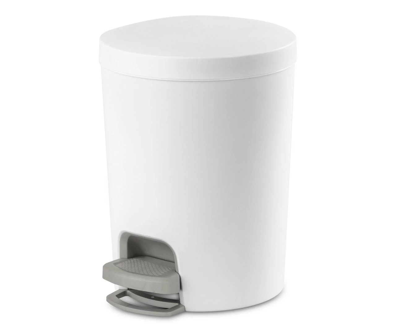 Open and close this trash can’s lid completely hands free just by stepping on the pedal. The design comes with a removeable gray plastic liner that can also serve as a separate trash or recycling bin.