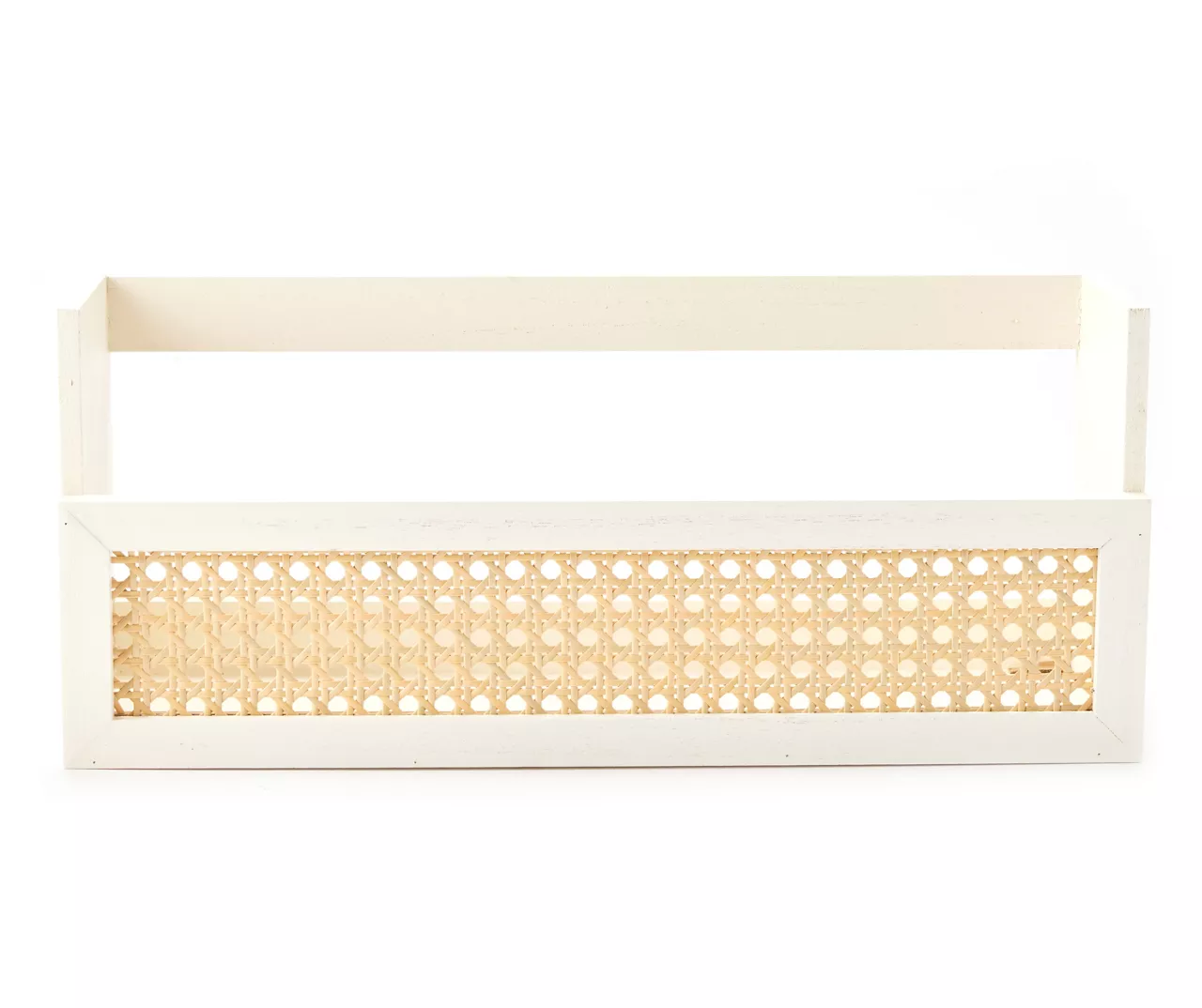 Organize your space and make a style statement with this charming wall shelf featuring a faux rattan panel fitted onto a white wood frame. The neutral palette makes it easy to complement and coordinate with your exisiting décor.