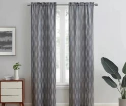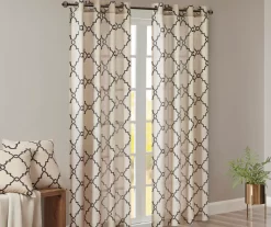Sereno Fretwork Khaki Light-Filtering Grommet Curtain Panel, (84″)