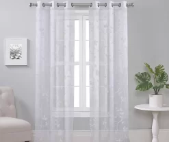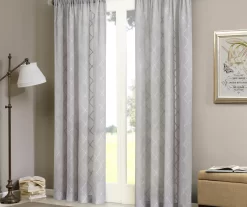 Clarissa Diamond White & Gray Sheer Rod Pocket Curtain Panel, (95″)