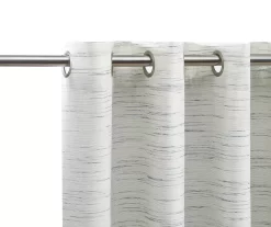 Jamie White & Indigo Stripe Semisheer Grommet Curtain Panel Pair, (84″)